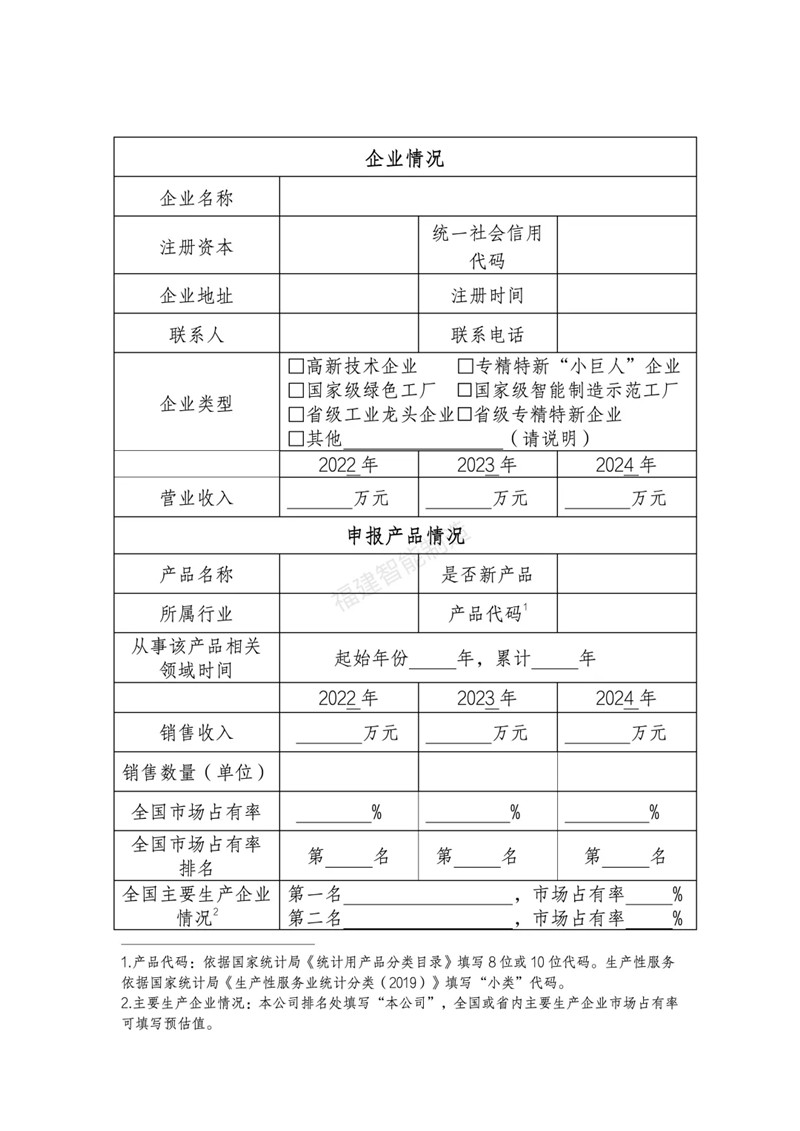1.福建省制造业单项冠军企业申报书