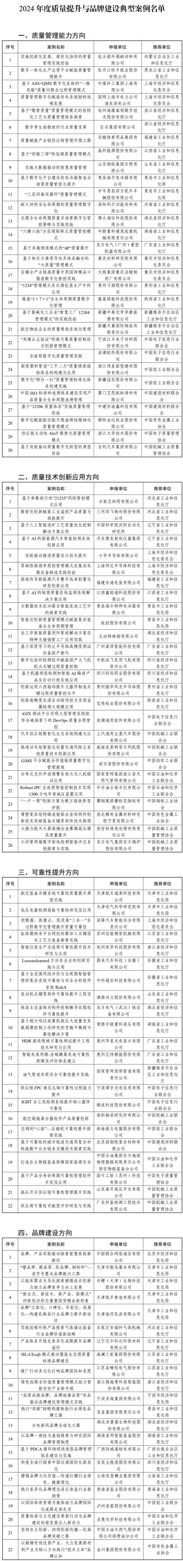 关于公布2024年度质量提升与品牌建设典型案例名单的通知