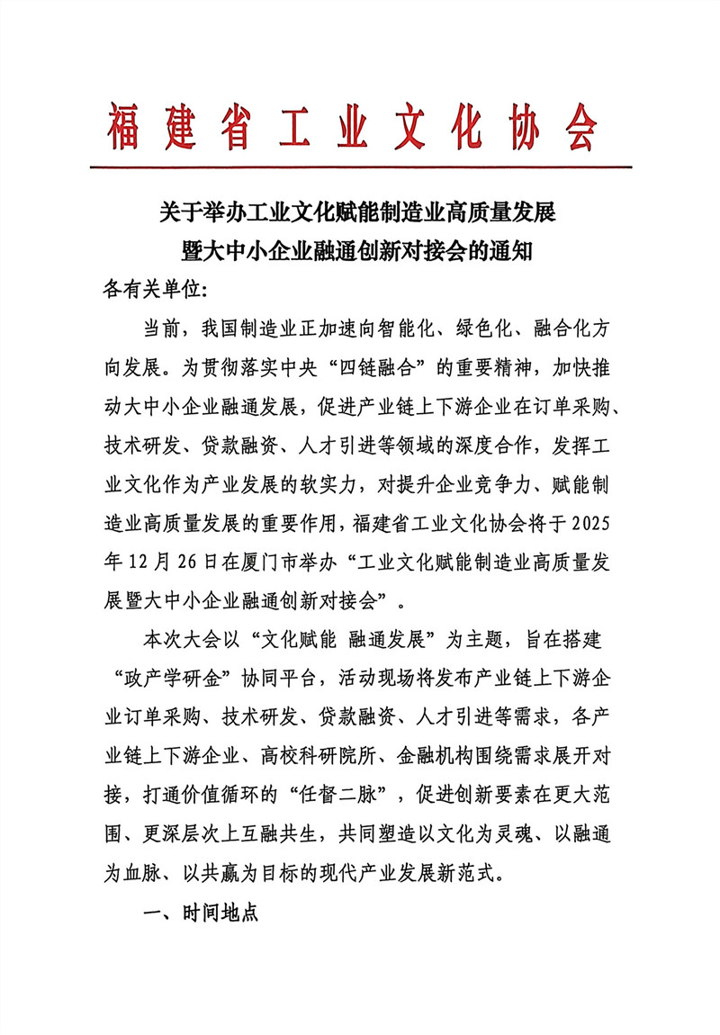 关于举办华体会·体育-华体会(中国) 赋能制造业高质量发展 暨大中小企业融通创新对接会的通知